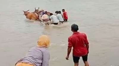 प्रसव पीड़ा में नदी पार करने को मजबूर महिला, बैलगाड़ी का वीडियो देख लोग बोले- यह है असली भारत!