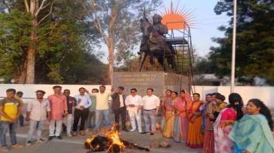 करणी सेना ने राणा सांगा पर विवादित बयान को लेकर किया प्रदर्शन
