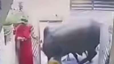 घर में घुसे झगड़ालू सांड़, गेट पर खड़ी महिलाओं के संग टला बड़ा हादसा