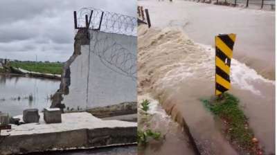 रीवा में बारिश ने खोली एयरपोर्ट निर्माण की पोल, बाउंड्री वॉल ध्वस्त
