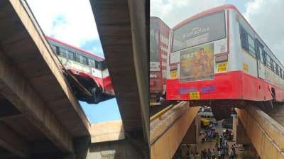यात्रियों की सांसें थमीं: चालक ने बहाव में उतारी बस, पुल से लटकती रही गाड़ी