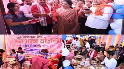 श्रमिकों के लिए तीसरे श्रमिक अन्न केंद्र का उद्घाटन, विधायक-महापौर ने श्रमिकों के साथ खाया खाना, थाली मात्र 5 रुपए म होगी उपलब्ध