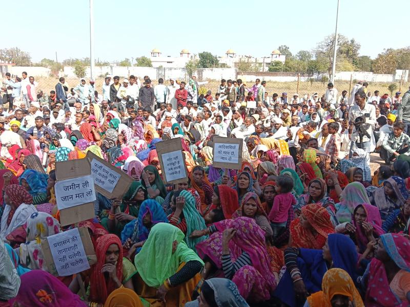 मुआवजा नहीं मिलने से नाराज किसानों-आदिवासियों का प्रदर्शन