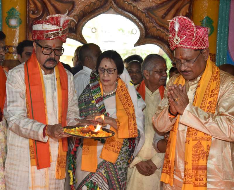 रायपुर : राज्यपाल रमेन डेका रथ यात्रा पर्व के अवसर पर आज गायत्री नगर रायपुर स्थित जगन्नाथ मंदिर में आयोजित महाप्रभु जगन्नाथ के रथ यात्रा महोत्सव में शामिल हुए। राज्यपाल डेका एवं मुख्यमंत्री विष्णुदेव साय ने भगवान जगन्नाथ की पूजा अर्चना कर ‘छेरा-पहरा‘ की रस्म निभाई। राज्य की प्रथम महिला रानी डेका काकोटी ने जगन्नाथ जी की विधि-विधान से पूजा अर्चना की।
