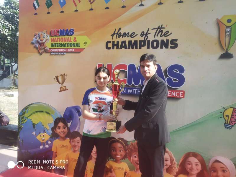 फिरोजाबाद, यूसीमास(ucmas) इंटरनेशनल और नेशनल लेवल प्रतियोगिता में अपनी अपनी कैटेगरी में कुमारी नव्या तिवारी तथा शिवांग तिवारी द्वारा प्रथम पुरस्कार जीता गया। यह प्रतियोगिता दिल्ली में यूसीमास(ucmas) एजुकेशन द्वारा आयोजित की गई थी। जिसमें यूसीमास इंडिया के सीईओ डॉक्टर स्नेहल करिया द्वारा नव्या तिवारी को प्रथम पुरस्कार इंटरनेशनल और नेशनल लेवल में उनकी कैटेगरी में मिला।नव्या तिवारीं ने 8 मिनट में 200 में से 193 प्रश्न हल किये तथा शिवांग तिवारी को उनकी कैटेगरी में तीसरा पुरस्कार नेशनल लेवल प्रतियोगिता में दिया गया। नव्या तिवारी कांग्रेस के जिलाध्यक्ष तथा जिला ब्राह्मण महासभा के अध्यक्ष संदीप तिवारी की सुपुत्री हैं तथा शिवांग तिवारी आदीप तिवारी के सुपुत्र है।नव्या एवं शिवांग दोनों ही जिला अस्पताल फिरोजाबाद के पूर्व अधीक्षक डॉक्टर बी.सी. तिवारी जी के नातिन और नाती हैं।