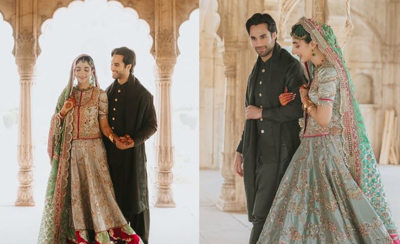 मावरा की शादी की तस्वीरें बेहद खूबसूरत लग रही हैं। मावरा के दुल्हन की लुक की तारीफ भी हो रही है। उन्होंने शादी के दिन को खास बनाने के लिए हल्के आसमानी रंग का लहंगा और चोली पहनी, जिसमें उनकी खूबसूरती की जितनी तारीफ की जाए वो कम ही है। वहीं, दूसरी ओर आमिर गिलानी ने डार्क ग्रीन कुर्ता-सलवार और मैचिंग दुपट्टा कैरी किया।