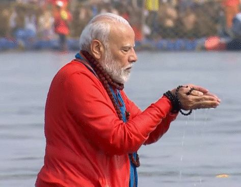प्रधानमंत्री नरेन्द्र मोदी ने संगम में डुबकी लगाई