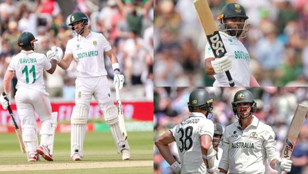 नई दिल्ली। लॉर्ड्स के ऐतिहासिक मैदान में ऑस्ट्रेलिया के खिलाफ वर्ल्ड टेस्ट चैंपियनशिप फाइनल में दक्षिण अफ्रीका की टीम जीत से सिर्फ 69 रन दूर है। तीसरे दिन स्टंप्स तक अफ्रीका की टीम का स्कोर 213/2 रहा और उन्हें जीत के लिए 282 रन का लक्ष्य मिला है। क्रीज पर एडेन मार्करम (102*) और टेम्बा बावुमा (65*) रन बनाकर नाबाद हैं।