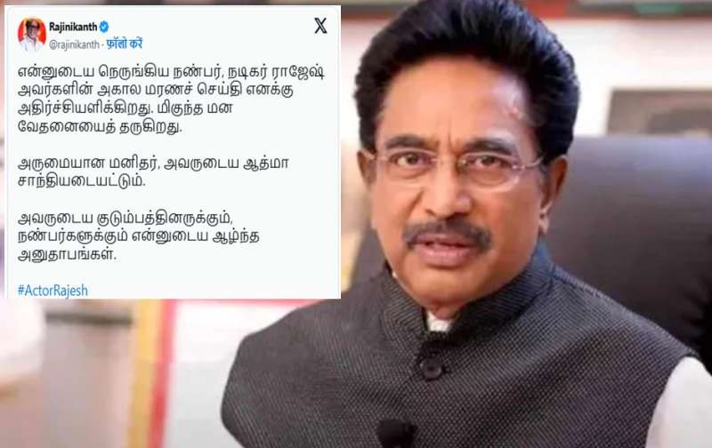 रजनीकांत ने गुरुवार को राजेश के परिवार को संवेदना भेजी और लिखा कि वह अपने दोस्त को कितना मिस करेंगे. उन्होंने तमिल में लिखा, 'मेरे करीबी दोस्त, अभिनेता राजेश की असामयिक मृत्यु की खबर ने मुझे झकझोर दिया और मुझे बहुत दुख पहुंचाया. वह एक बेहतरीन इंसान थे, उनकी आत्मा को शांति मिले. उनके परिवार और दोस्तों के प्रति मेरी गहरी संवेदनाएं.' प्रशंसकों ने कमेंट में राजेश के रजनीकांत के प्रति लगाव को याद किया और साथ में बिताए समय की तस्वीरें पोस्ट कीं. कई कमेंट में अचानक हुई मौत पर सदमा भी जताया गया.