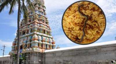 चंद्रचूड़ेश्वर मंदिर में प्रसाद से निकला सांप का बच्चा, तस्वीरें वायरल