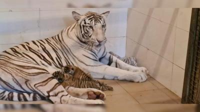 सदाबहार खुशी: ग्वालियर जू में बाघनी ‘मीरा’ ने जन्म दिए तीन शावक, रॉयल बंगाल और सफेद