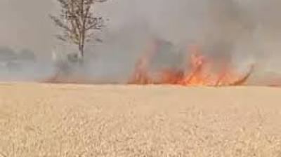 आग की लपटों में समाई 500 एकड़ फसल, गांव में मचा हड़कंप
