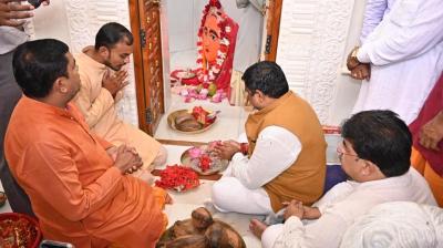 स्कूल शिक्षा मंत्री गजेन्द्र यादव ने धमतरी में माँ विंध्यवासिनी मंदिर में की पूजा-अर्चना
