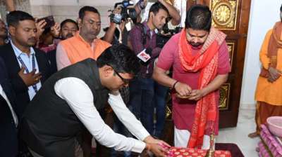 वित्त मंत्री ओपी चौधरी ने बजट पेश करने से पहले मंदिर में की पूजा-अर्चना