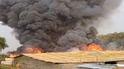 प्रयागराज: परेड ग्राउंड में भीषण आग, लल्लूजी टेंट हाउस का स्टोर जलकर खाक