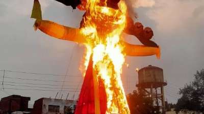 यूपी के सोनभद्र में 85 फीट ऊंचे रावण की चारों तरफ घूमती नजर आई मुंडी