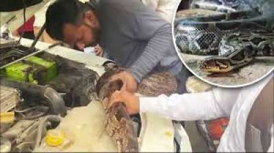 कार का बोनट खोलते ही दिखा अजगर......उड़ गए होश