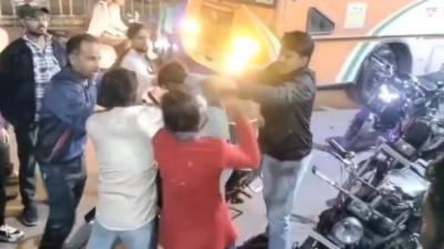 हाथ जोड़ता रहा युवक, चप्पल से वार करती दिखी महिला